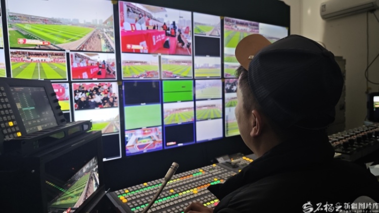 工作人员在导播台观看赛事画面。石榴云/新疆日报记者宋海波摄