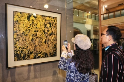 参观者在展品前驻足观看领略广东民间工艺精品魅力