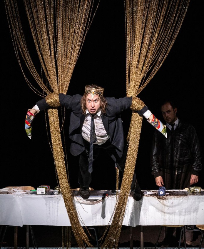他无法忍受这个“经典形象”,于是和艾丁格在剧场里创造出另一个“肥胖肮脏的哈姆雷特”。说到一年前震惊上海观众的《哈姆雷特》,奥斯特玛雅不掩饰他在利用经典文本作出激进的时代表达。“并不是每个人心中有一个哈姆雷特,相反,哈姆雷特是庸俗的每一个人。当父亲的鬼魂说出真相,他不能完全相信。他没有勇气追逐真相,也没有能力采取行动,他放任事态不断恶化,直到全部的公共生活成为无可挽回的灾难。这不是丹麦王子的传说,在我看来,这是欧洲正在发生的现实,几乎每个普通人都是不愿相信真相也不愿意行动的哈姆雷特。”