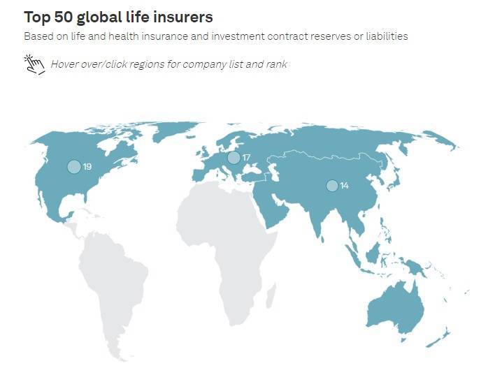 根据排名,全球前10名的人寿保险公司,中国、美国、加拿大各占两席。前50名中,中国有7家公司上榜,分别为中国人寿、中国平安、中国太保、国泰人寿、泰康保险、新华保险、中国太平。从登榜的国家数量看,依次是美国、中国、英国、日本、法国。